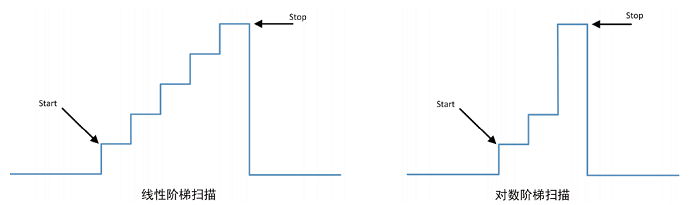 -对数阶梯扫描:从起始电压到终止电压使用单位自变量的变化率为对数的扫描
